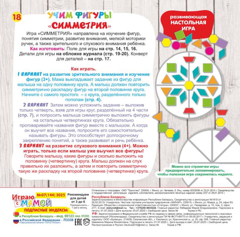 Играю с мамой №07 2025 — СКАЗКА, Развивающая Игра — «Симметрия» +учим фигуры
