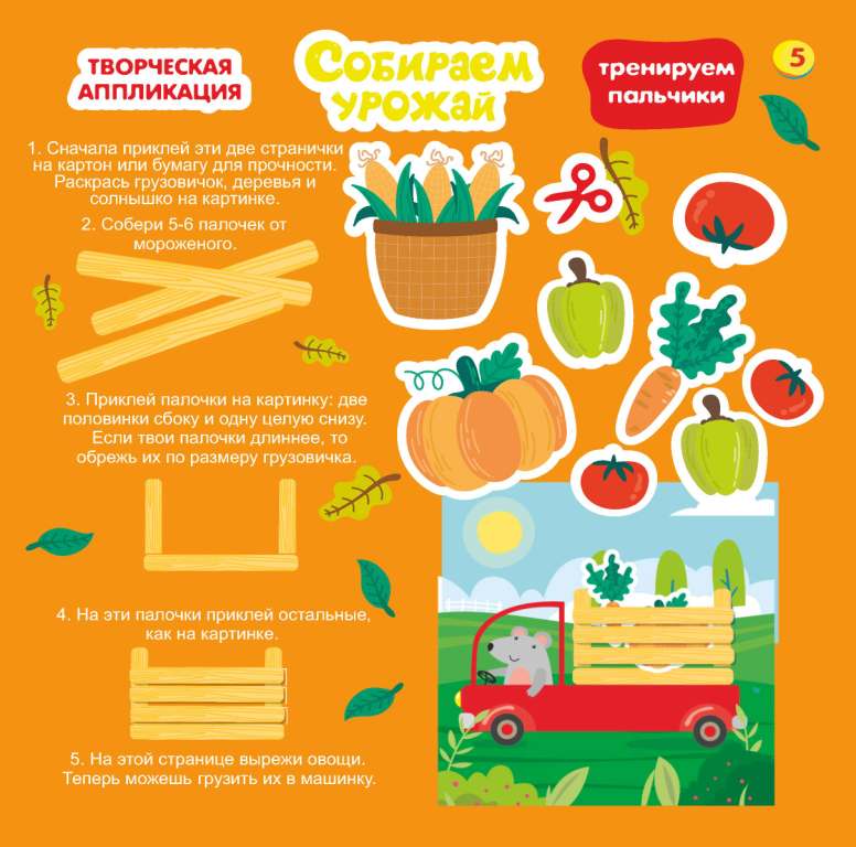 (Используем краски, пластилин, крупы, вату и т.д. Цветную бумагу не придется докупать — все детали уже в журнале ))