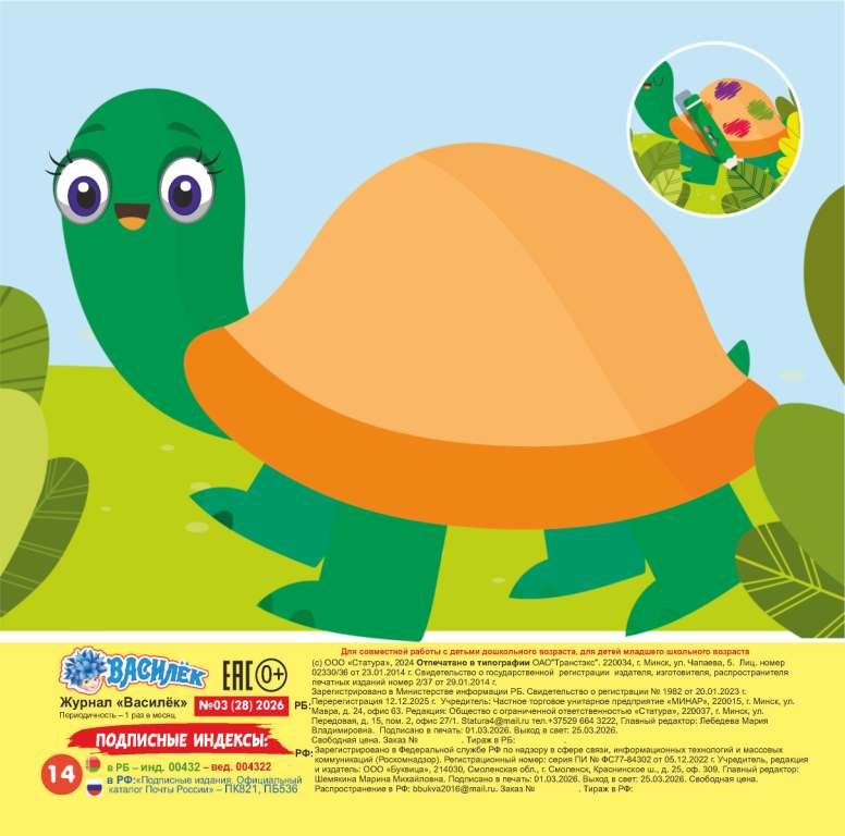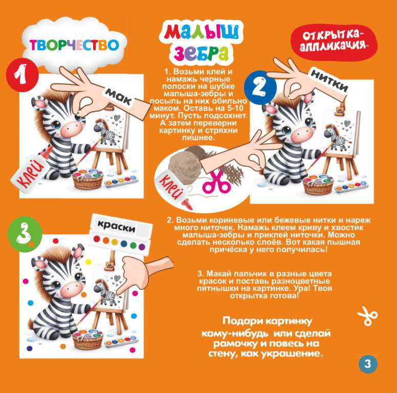Новинка! Василёк 2+ (16стр.) №03 2026 Игрушка пазлы для малышей «Зверюшки и Ягодные соки», открытка-аппликация «Малыш Зебра», Логические аппликации с деталями «Слоники в цирке»